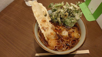 久々の元長で何を食べようか?実は春菊天にまだありついてないので、ファーストオーダーは決まった。食券機を眺めて、追加でちくわ天も追加。